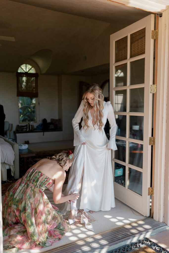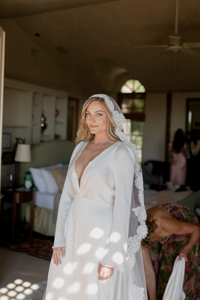 Hannah got ready in the bridal suite surrounded by her closest friends. No formal bridal party. Just her people. Music playing. Laughter echoing through the villa. It felt intimate and intentional.