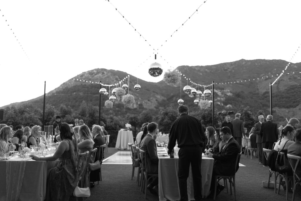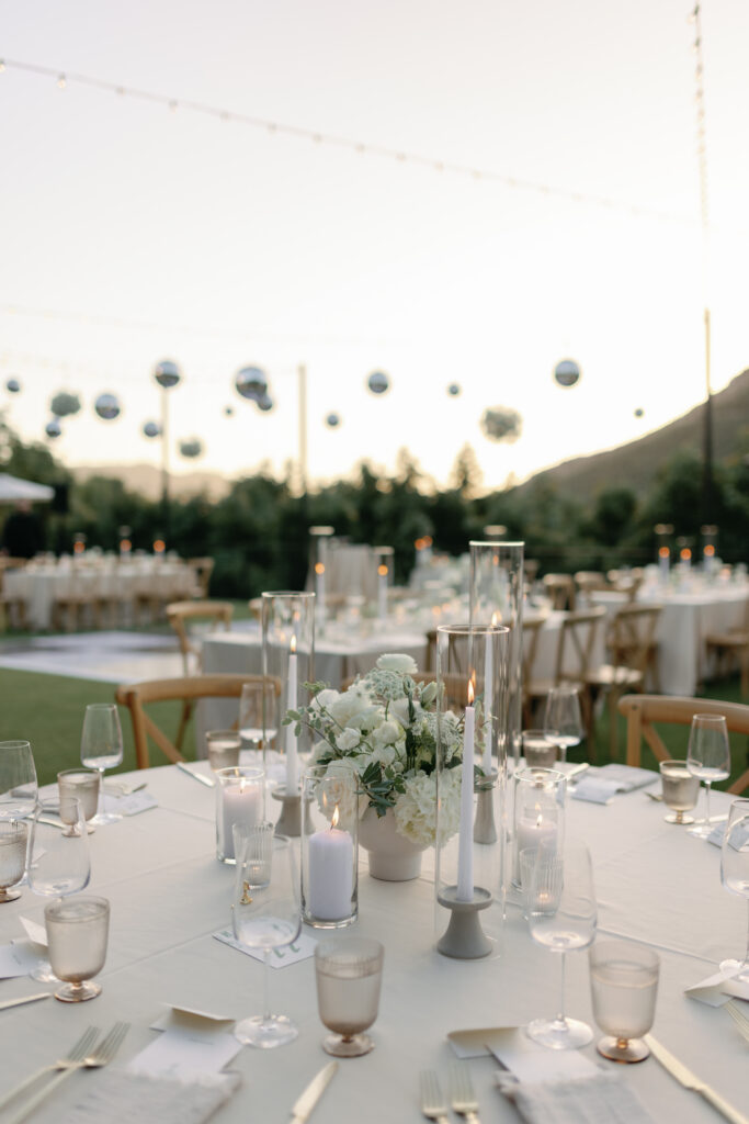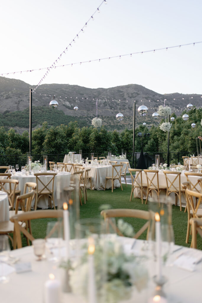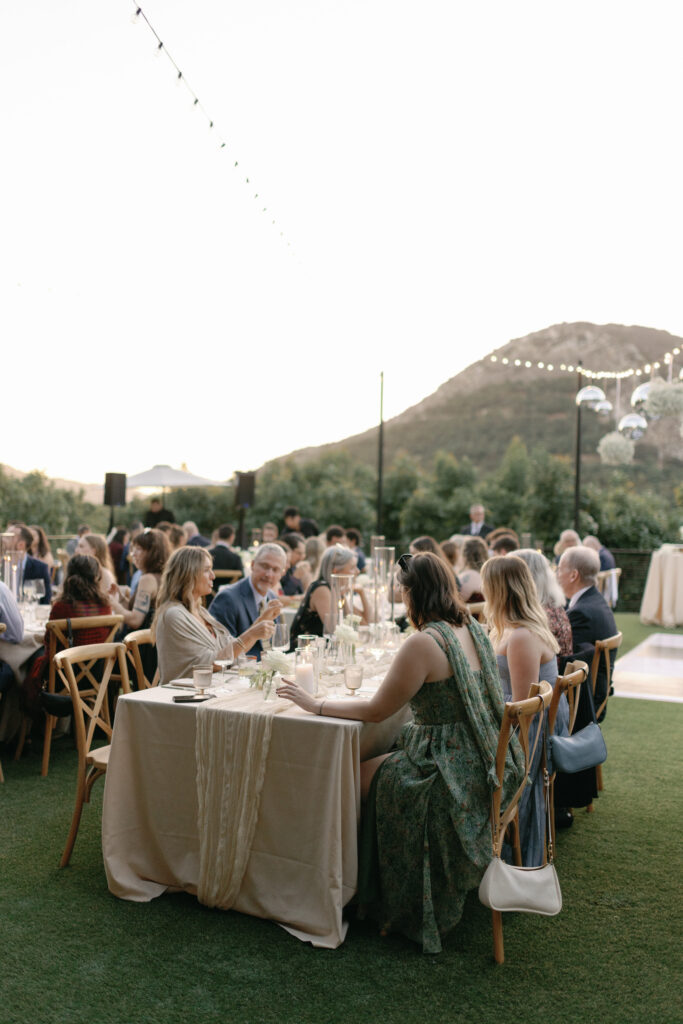 Candlelight layered across tables. Linen signage thoughtfully designed. A bar flowing with guests. The vineyard air cooling just slightly as the sky deepened.