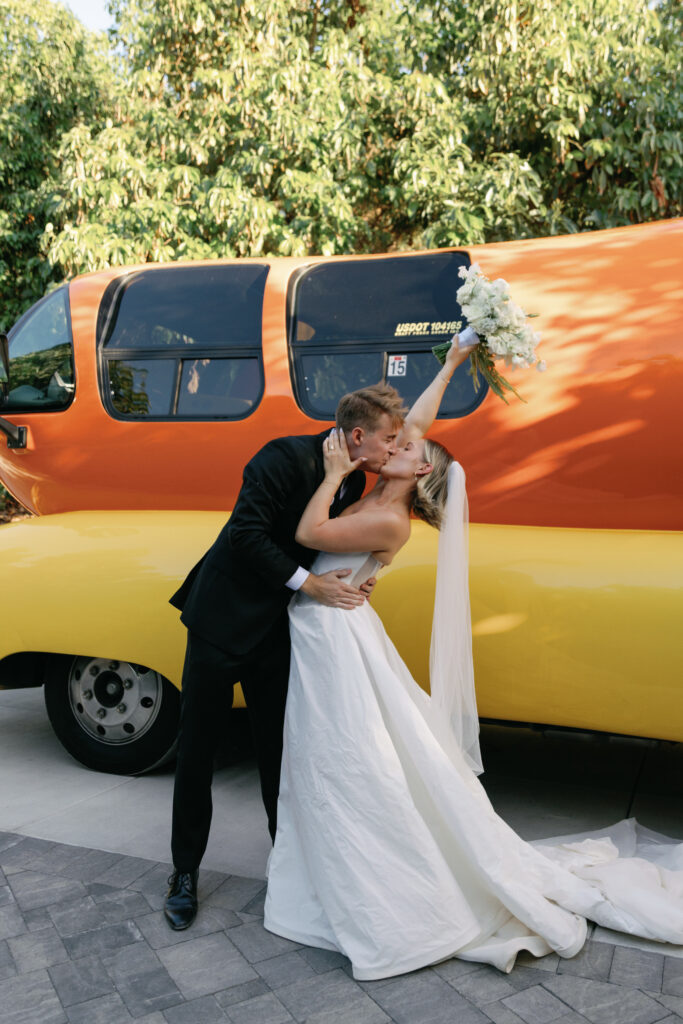 Katie and Jake fully leaned into it, posing with the Wienermobile as the sun began to dip.