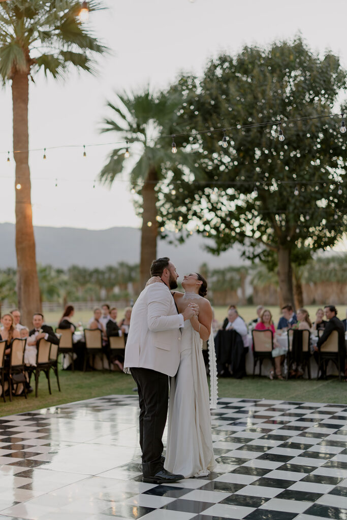 The Emerson Estate in Thermal, California is one of those Southern California wedding venues that feels both expansive and intimate at the same time. Palm trees lining the property. Clean architecture. Neutral textures that glow as the sun begins to drop behind the mountains.
